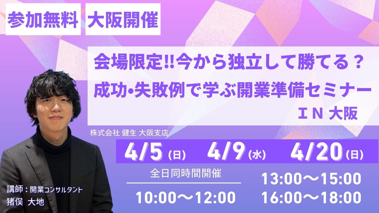 【大阪対面/開業セミナー】参加無料‼今から独立して勝てる?成功・失敗例で学ぶ開業準備セミナー