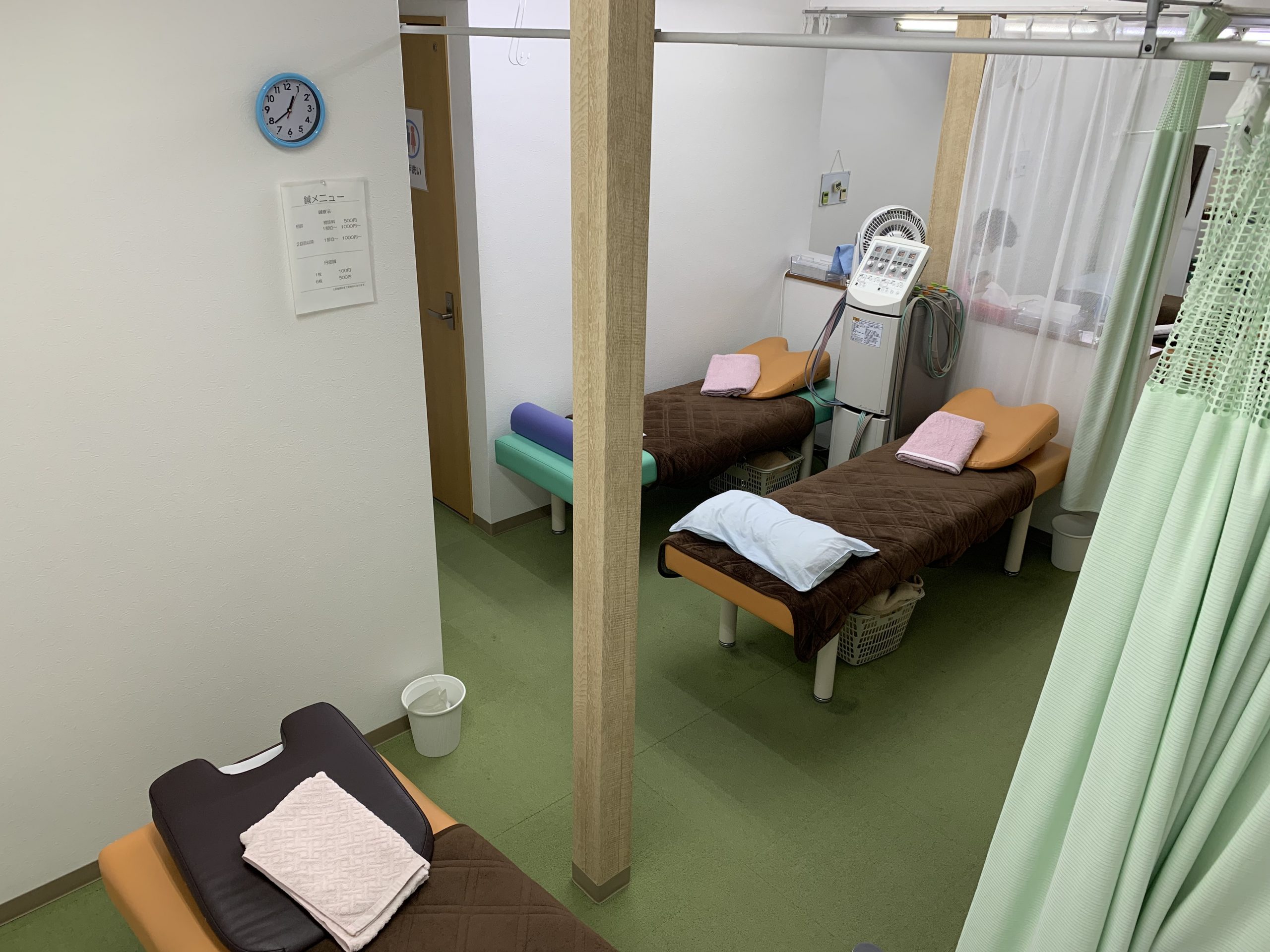 施術用ベット(穴あき)7床 / OG 干渉波 1 / メドマー 3 / ローラーベッド 1 / ヘルストロン 1 / ホットパック 1 / その他、家電等院内設備全般