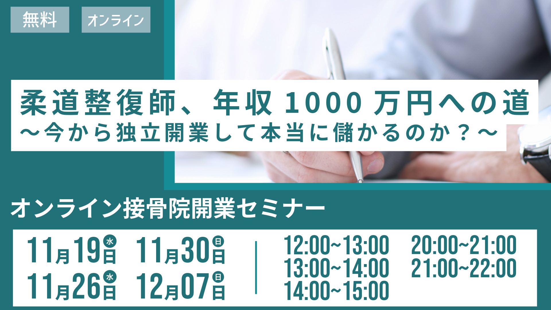 【web】参加無料!柔道整復師、年収1000万円への道 ~今から独立開業して本当に儲かるのか?~(オンライン)