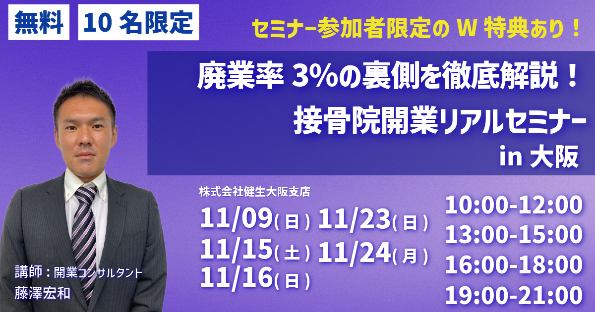 【大阪対面/開業セミナー】廃業率3%の裏側を徹底解説!接骨院開業リアルセミナー